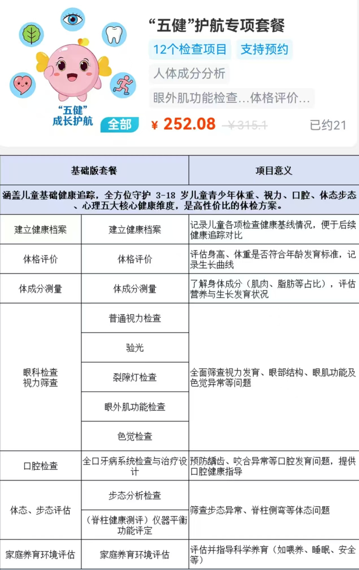 “五健”成长护航专项体检套餐,助力儿童健康成长